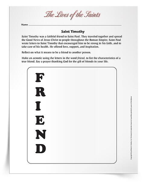 On January 26, the Church celebrates the Feast Day of Saint Timothy. Teaching children about saints provides inspiring examples of discipleship and models for living out their faith. Celebrate the Feast Day of Saint Timothy with a printable intermediate resource.