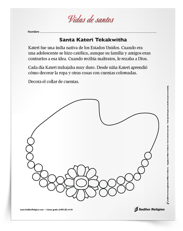 Inscríbete ahora Register NowDescubra la inspiradora vida de Santa Kateri Tekakwitha y haga participar a los alumnos en una actividad imprimible que les ayude a conocer su fe y su festividad a través de la reflexión creativa y la oración (ideal para los cursos de primaria).