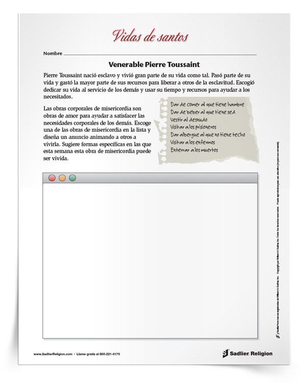 Leer ahora Read NowCelebra la vida del Venerable Pierre Toussaint con una actividad que presenta a los niños su historia de caridad y perseverancia, junto con lecciones sobre cómo acoger y ayudar a los demás (grados K–6).