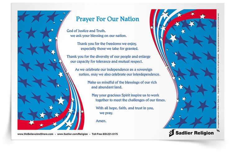 Pray for the United States in gratitude for freedom and diversity and to work together as a nation.