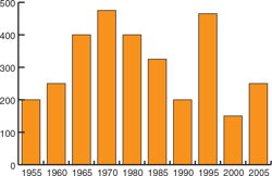 Allow independent time for each group to create these graphs, but actively discuss with them what the horizontal and vertical axes will look like. For example, ask students to consider whether a scale in hundreds would be helpful here.
