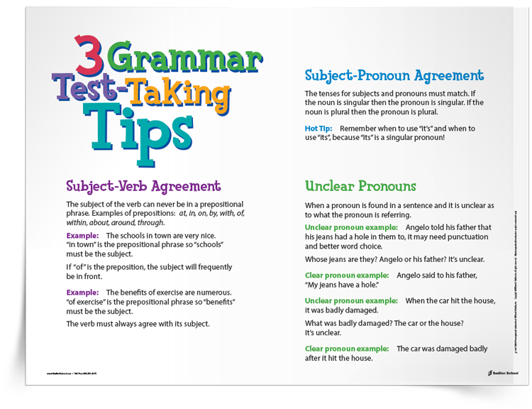 Prepare students in Grades 6–12 for assessments with this tip sheet to review key grammar skills.