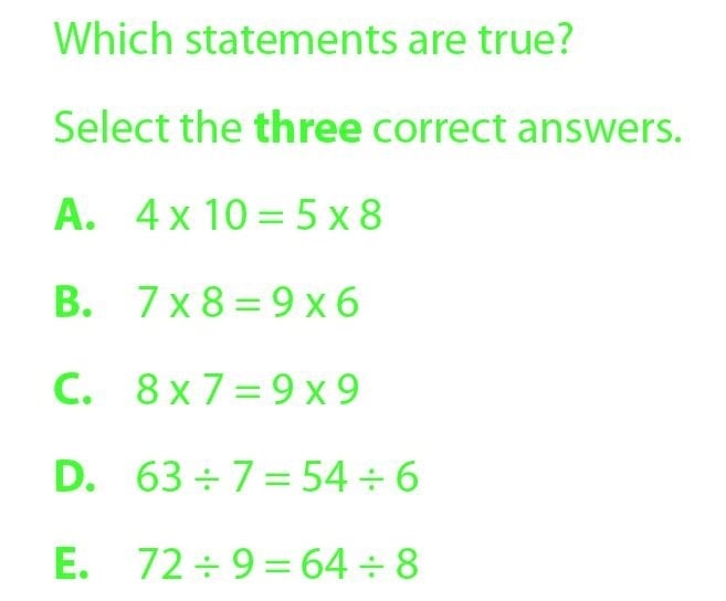 Grade 6: What is different about this math multiple response question from sixth grade is that the correct number of responses is not indicated. I did not see this in any of the items in the earlier grades.